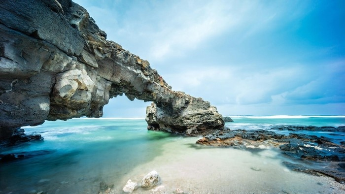 - 17h30: Đoàn tham quan Thạch Cổng Tò Vò, khó có nơi nào mà ngắm hoàng hôn đẹp như nơi này. Bầu trời đỏ rực trải dài trên mặt biển, lấp ló dưới mái vòm đá núi lửa tạo nên một bức tranh không thể lãng mạng hơn mà tạo hóa đã ban tặng cho con người.